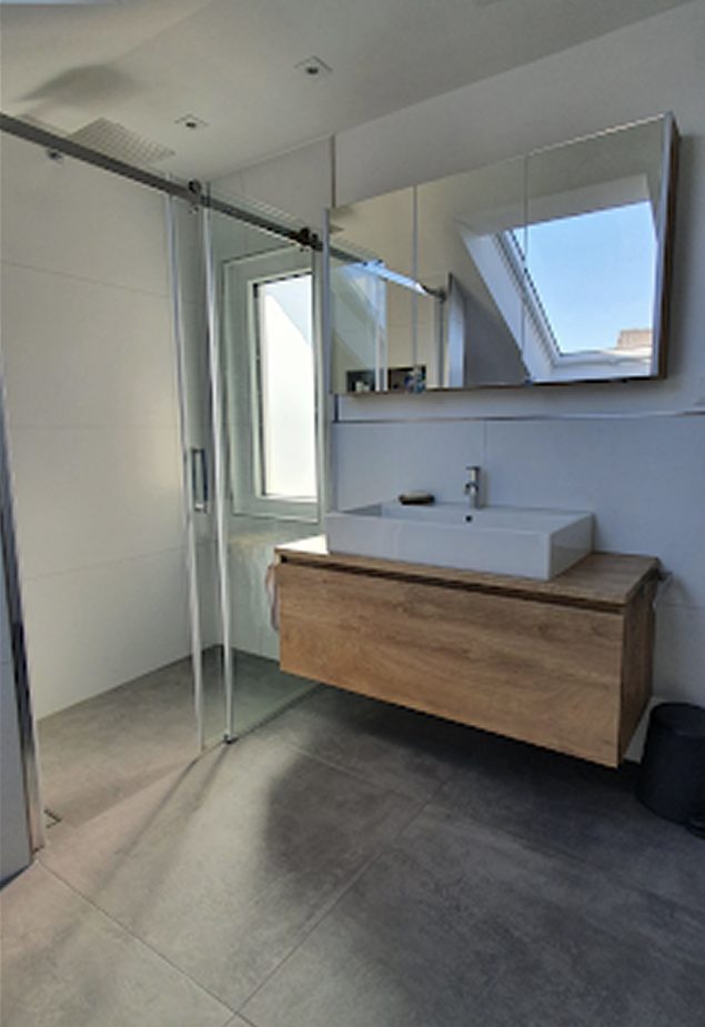 Moderne Materialien, berührungslose Armaturen und effiziente Wassernutzung – wir setzen auf zukunftssichere Technik und nachhaltige Lösungen.